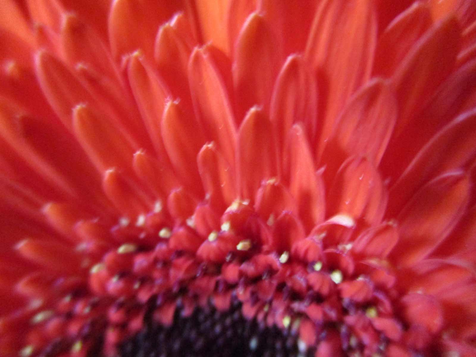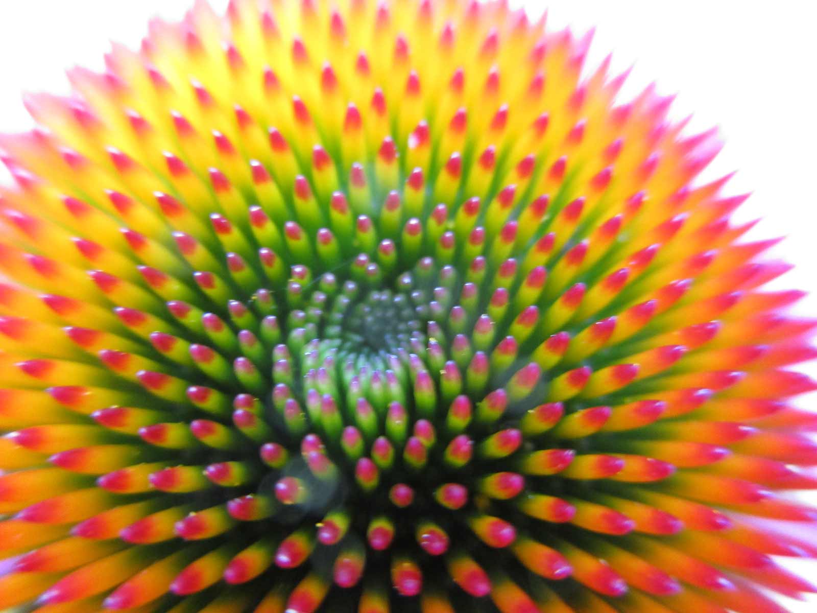 In this second example, I photographed a cone of an echinacea plant. The colours are exciting, but it is too blurry to be usable.