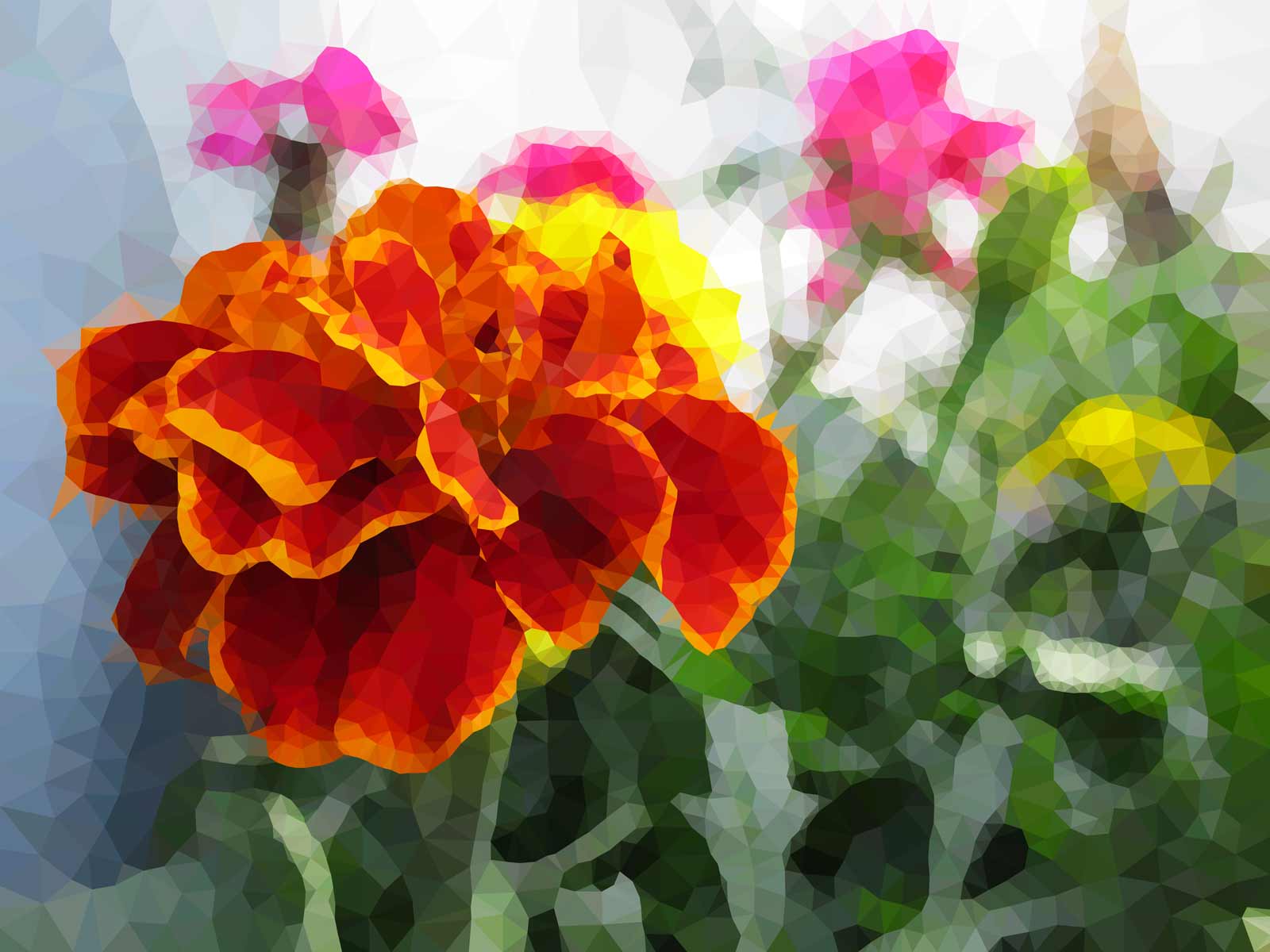 Unfortunately, this photo of geraniums in full bloom was not rescuable with the sharpening tool. I decided to turn it into a piece of poly art.