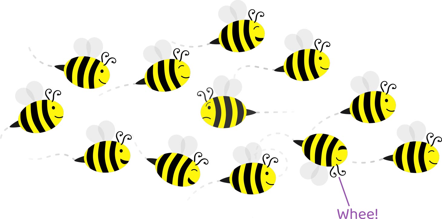 I spend my days hopping from flower to flower, collecting nectar. While I’m doing that, I’m grumbling. When I’m not in the garden, I’m in the hive, complaining. In my free time, I grouch about things. See the theme here? I don’t know why I’m perpetually grouchy, but it grumps me out. My siblings are annoyingly happy and cheerful. Look at them, zooming around in loops! Makes me dizzy. When people think of bees, bumblebees or honeybees, most of them think about bees like my siblings. Ugh!