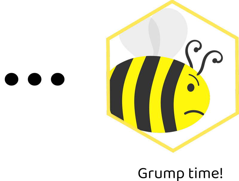 Now you know why we’re cranky. Lots of humans, animals and bees grumble when the snow starts falling – it means cold feet and a dwindling food supply. For us bees, it means that we need to work harder than ever to protect our precious honey supply.