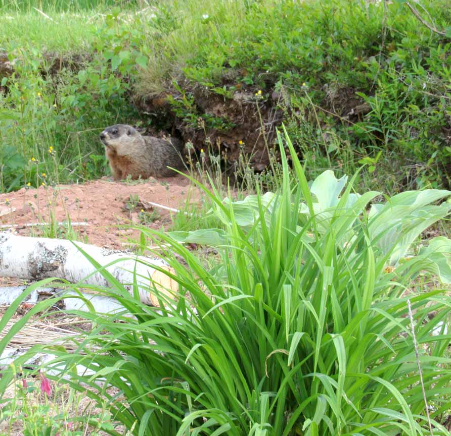 Jerry is a groundhog who strolled through our yard one day and decided to make a home for himself here. His home popped up seemingly overnight. And he chose the perfect spot – his front doorway is just inches away from my garden! He cleared rocks and branches to create a ginormous tunnel leading down into the ground.