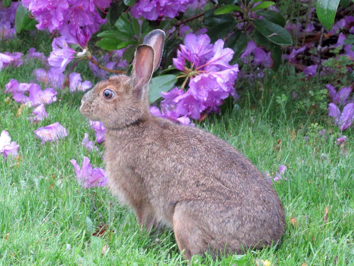 I love bunnies. They’re cute, they’re quiet, and they thoughtfully eat up dandelions for us. When the windows are open and someone is playing the piano, a bunny will occasionally choose a spot near the window so it can enjoy a concert while having dinner. Every spring, a new batch of bunnies appears from their den. They run, leap, and chase each other so exuberantly, that we can almost hear them shouting, “Hurray! It’s spring! We’re free!”