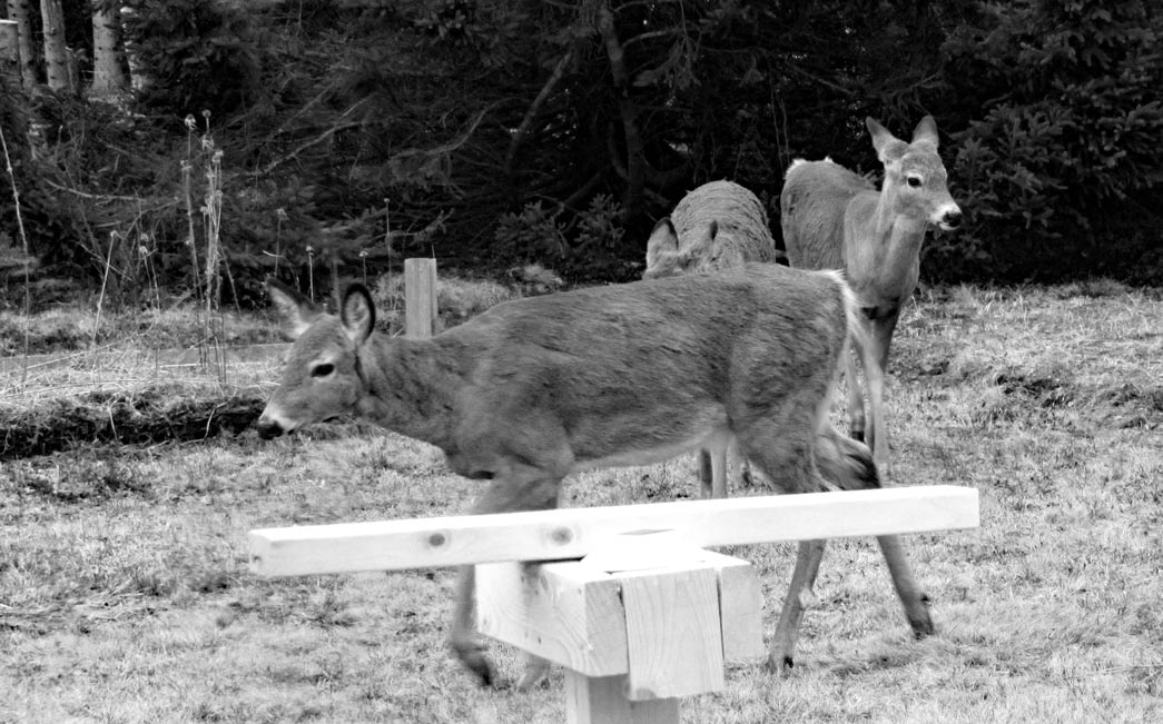 I know a family member and several gardeners for whom deer are big nuisances in the garden. However, they’re not yet a big problem here, thankfully. We have had a few deer sightings over the years. One morning, this group appeared right in front of the dining room window!