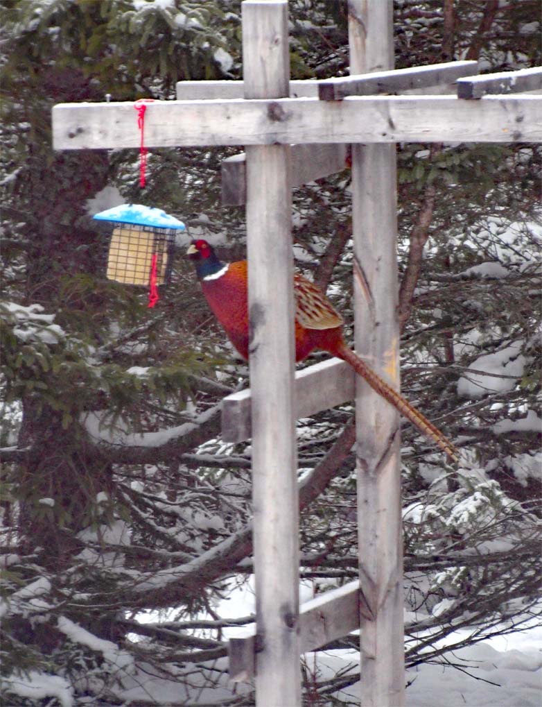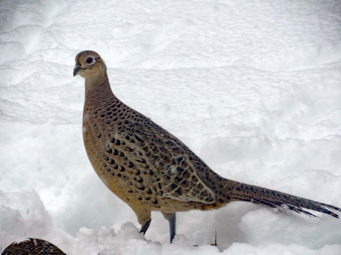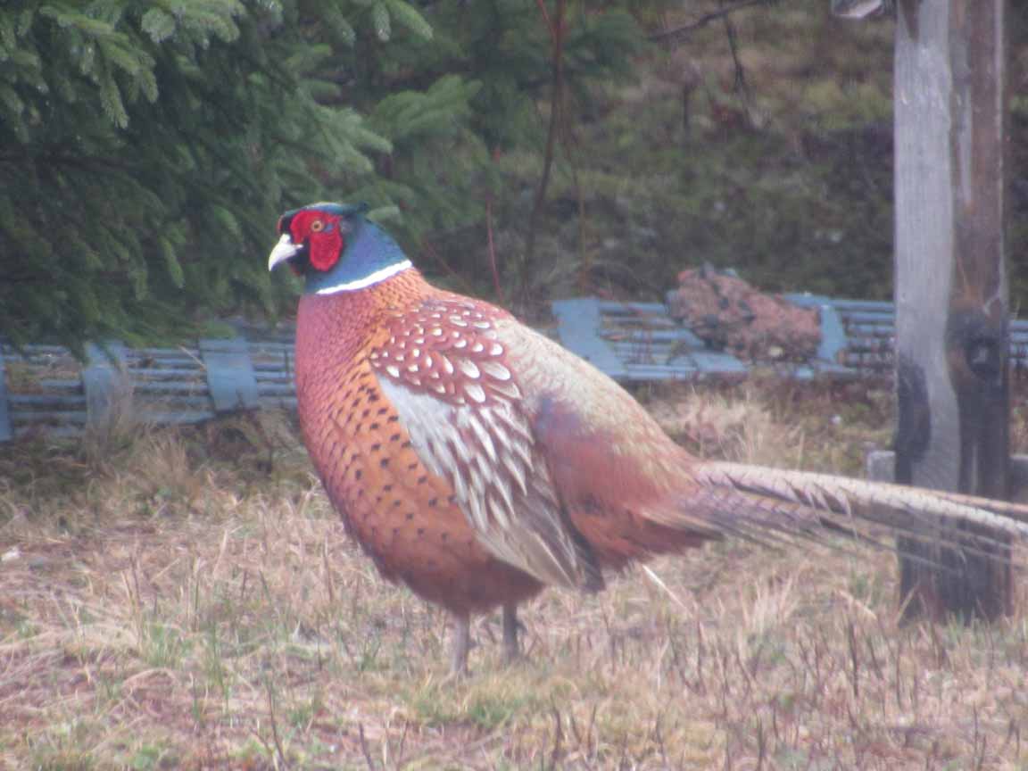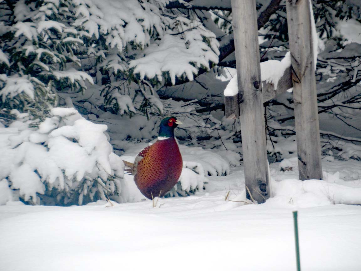 Big Bird (creatively named due to his size and his first appearance during my Sesame Street stage) is one of several ring-necked pheasants who grace our yard. He struts around carefully, constantly checking to see who is watching. In the mornings, I often wake to the sound of a loud squawk, followed by a lovely feather-rumpling sound. I think it’s his “Look at me!” call, as he performs this accompanied by amusing tail displays whenever the ladies are around.