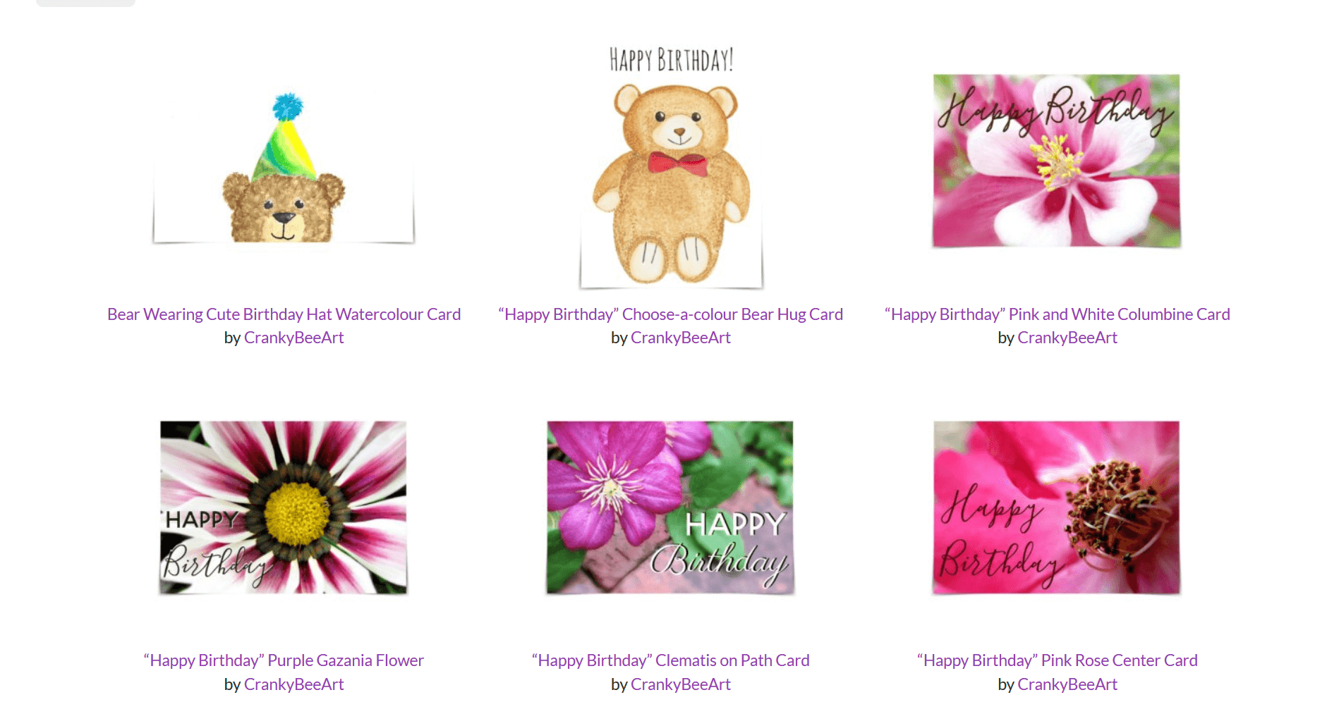 Sometimes designers group products together into collections to make it easier for you to find things. At our Cranky Bee Art store, we’ve created collections according to themes, such as Happy Bees, Bee Tees, Adoption Day Cards and more.