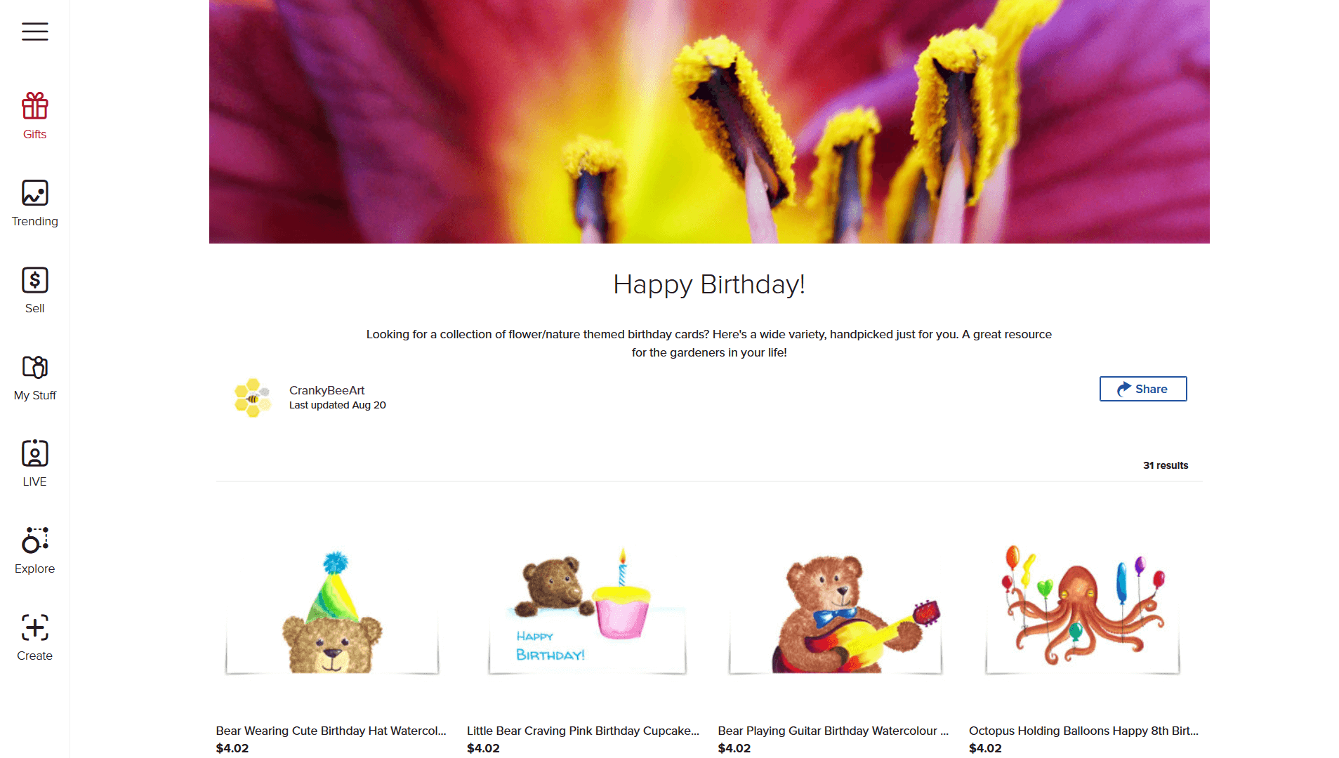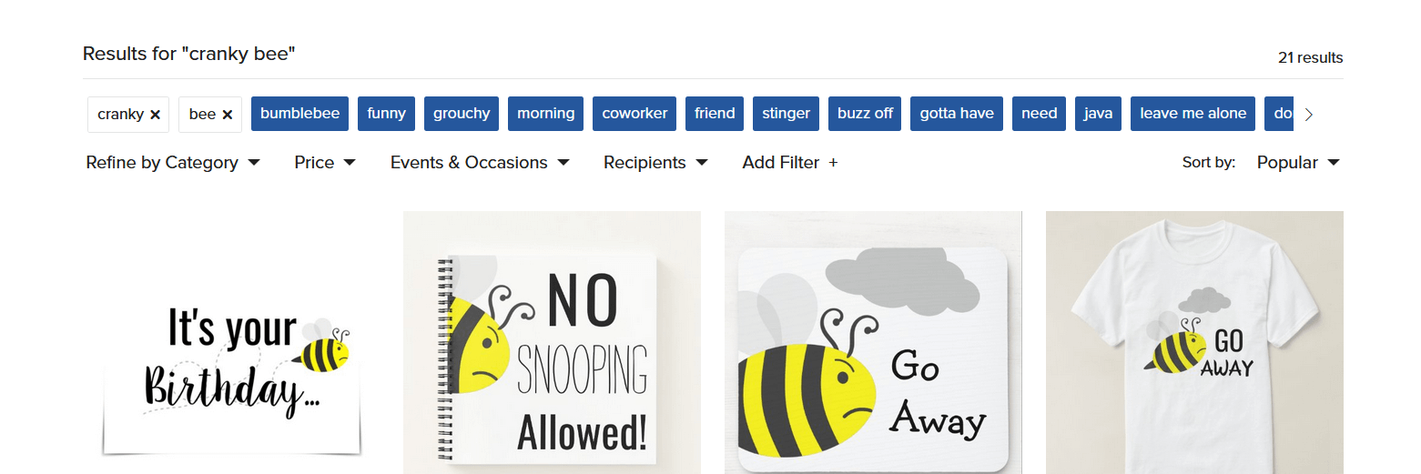 If you click the collection name, then Zazzle will open up the collection’s home page, such as this happy birthday collection page. This can lead to a rabbit hole of exploring collections and products!