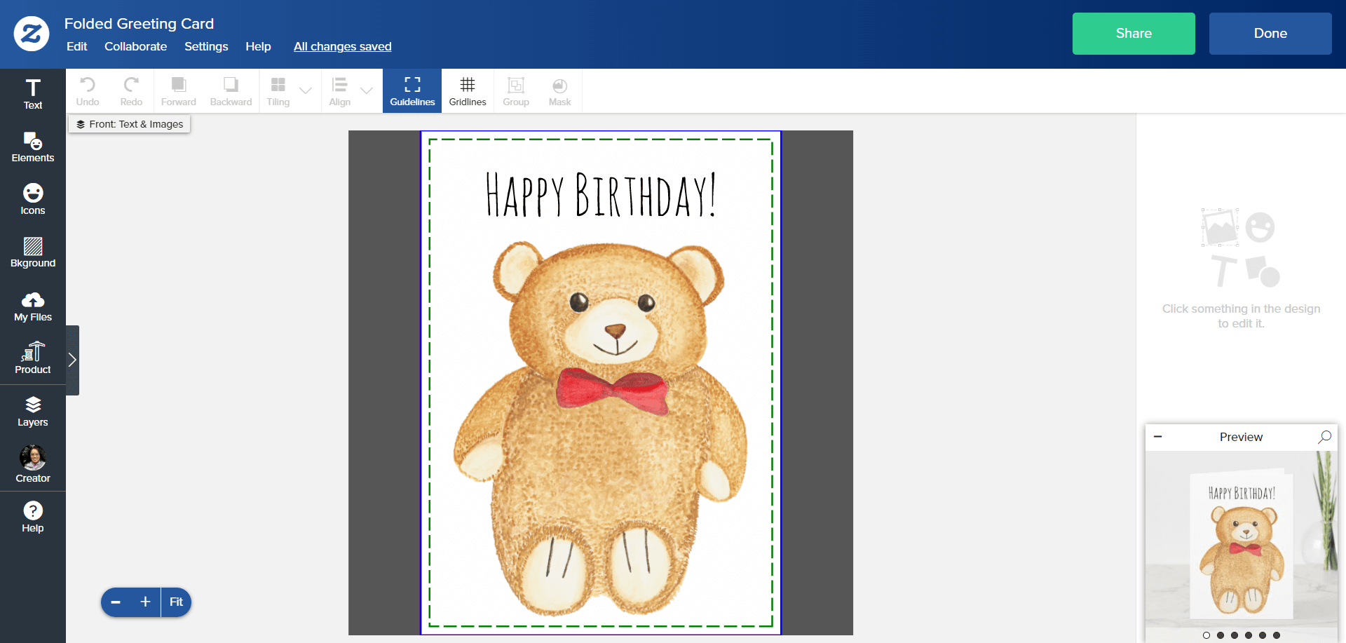 Now you can change the text to suit the occasion, add your friend’s name, or move Opa Bear around (he won’t mind!). Most of our cards have images on the insides of the cards, so if an image doesn’t fit what you want to say, you can delete it. Don’t worry about ruining the card: On Zazzle, your edits only apply to a copy of the product on your account.