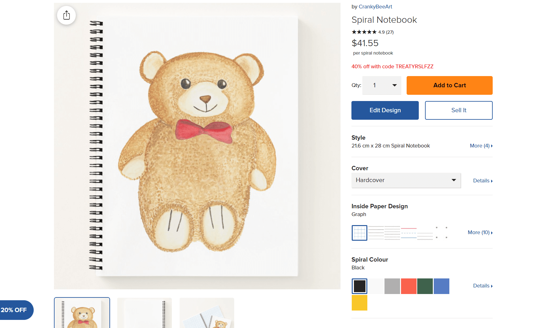 Let’s say that you want to order a design for a different product, like a notebook. Do you need to ask the designer to create the design all over again? No, of course not! Scroll down, down, past the suggested products. You will see a collection of products with a preview of your design already transferred onto other products.